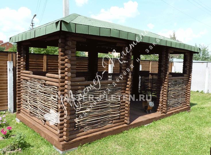 Беседка из березовых бревнышек с плетеными вставками