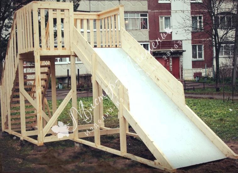 Размеры: (ДхВ) 7,0х3,0 м./ скат (ДхШ) 4,5 х1,0 м. / площадка (ДхШ) 1,0х2,0