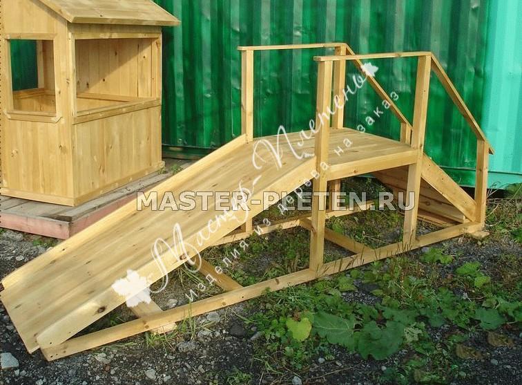 Небольшое сооружение деревянной горки специально предназначено для игр маленьких детей. Спуск с данной горки безопасен и убережет ребенка от резкого падения вниз. Малыш будет весело скатываться с небольшой заливной горки и быстро подниматься по удобным лесенкам вверх для очередного игривого спуска. Борта горки также выполнены из дерева и совершенно безопасны. Материал обработан и защищен, что не позволит ребенку получить неприятную занозу. Небольшая деревянная заливная горка для маленького ребенка может быть установлена прямо на участке частного домовладения, в месте, где малыш всегда будет под присмотром. Пока маленькая горка из дерева будет отвлекать малыша, взрослые родители будут полноценно заняты своими делами. Кстати, если заливная горка из дерева для дачи поднадоест маленькой егозе, его внимание может быть отвлечено и другими играми. Например, детский деревянный домик станет отличным местом для развивающих игр малыша.