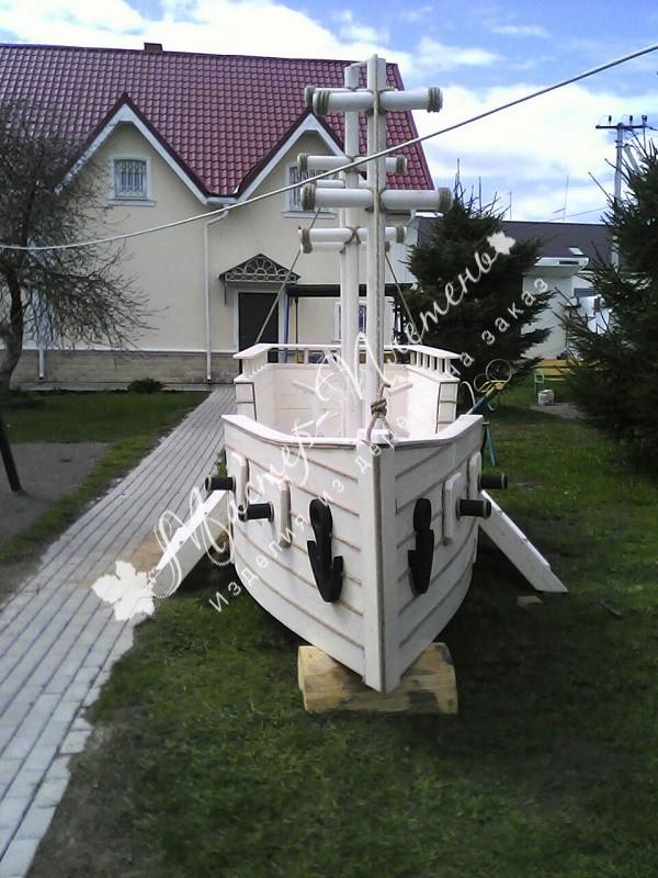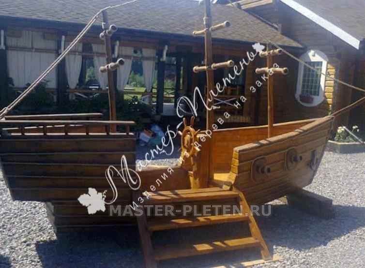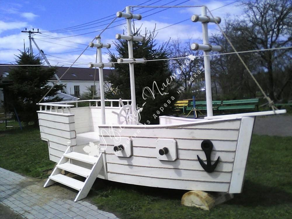 Представленный на фото деревянный декоративный игровой корабль является настоящим игровым комплексом, которому будут очень рады дети во дворе. Использование экологически чистого материала, безопасных красок и современная обработка позволяют говорить о максимальной защищенности детей во время подвижных игр. Маленькие исследователи могут вообразить себя смелыми капитанами, важными матросами и просто гостями настоящего корабля, уходящего в бушующее море детских фантазий. Позвольте детям наслаждаться детством с пользой!