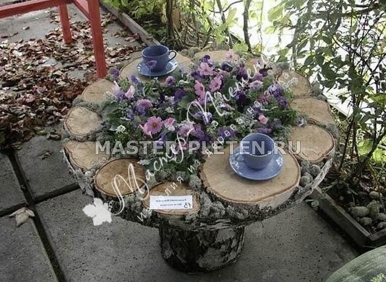 Стол из березовых поленьев