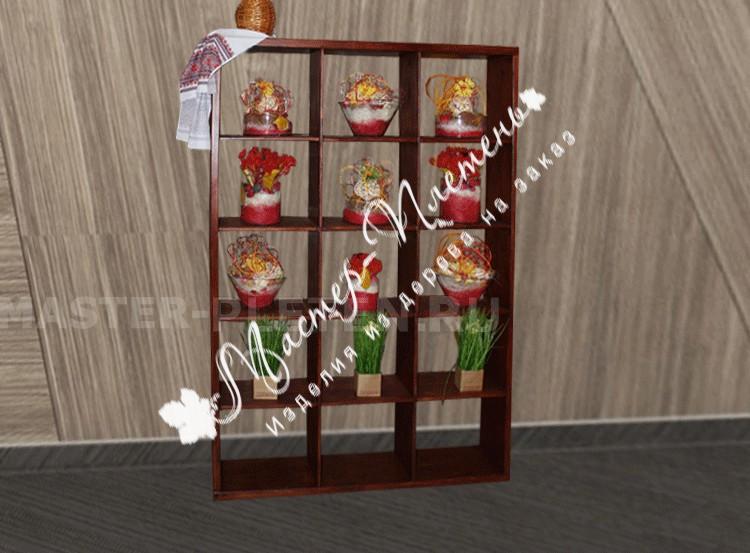 Стеллаж является местом для хранения приятных мелочей, игрушек, подарков, сувениров. Но бывает такая ситуация, что стандартные деревянные стеллажи по своим габаритам ну никак не вписываются в помещение. Правильным решением будет заказать стеллаж по своим размерам. Перед вашими глазами простейшая модель стеллажа, которая может видоизменяться по желанию и требованиям клиента. Обращайтесь в Мастер Плетень и заказывайте стеллажи и другую деревянную мебель, которая будет выполнена специально для вас!