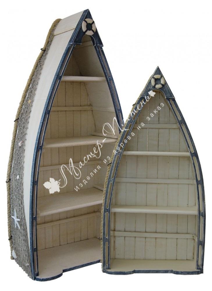 Декоративная деревянная лодка стеллаж станет довершением оформления гостиной, кабинета или детской в Вашем доме.