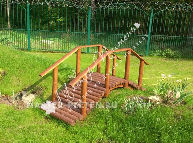 Как элемент деревенского ландшафта мостик из деревянных бревнышек как ничто лучше соотносится с романтикой. Что ни говори, а мостики нужны участку - они закрывают неровности, красиво обрамляя их, делают местность более продуманной и законченной. Вместо досок, как обычно, для изготовления мостика используются деревянные обработанные бревнышки небольшого диаметра, что делает его более привлекательным. Если вам понравился данный мостик, просто позвоните или сделайте заказ через форму обратной связи.