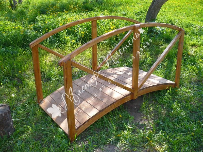 Изящный деревянный мостик прекрасно подходит для украшения зон на участке. Им можно задекорировать небольшой пруд, водоем или просто создать романтическую атмосферу вокруг. Данная модель мостика выполнена из древесных досок. Помимо исходных размеров, в нашей мастерской можно заказать мостик из дерева по вашим размерам и любому эскизу.