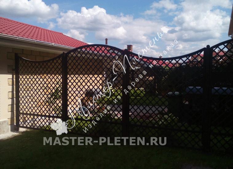Из шпалерных решеток может получиться очень интересный и необычный забор для ограждения территории. Ячейки могут быть любого размера по желанию заказчика. В том числе, забор из шпалер может быть выкрашен в любой цвет на выбор. Забор из деревянных решеток в форме волны будет красиво выглядеть как на даче, так и в ресторане, например, в качестве формирования летней террасы.