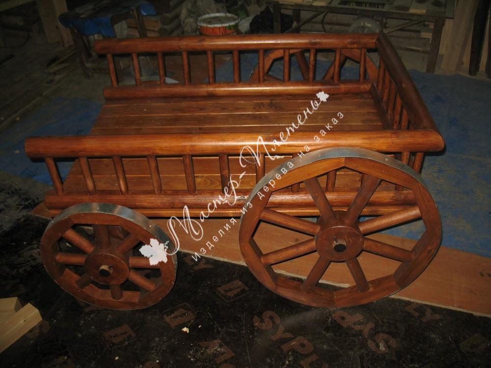 В современном мире деревянные телеги по назначению используются крайне редко, телега весьма актуальна как интересный элемент дизайна, ее используют в качестве декоративных витрин, клумб и украшений для фотозон или земельных участков.