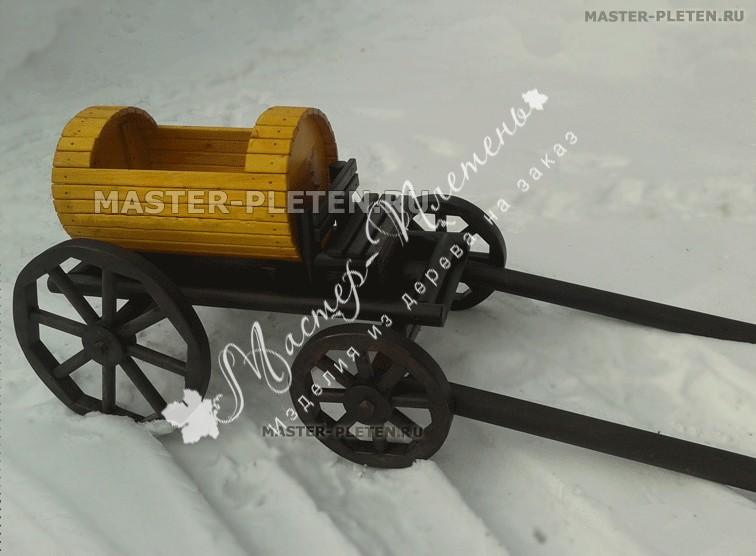 Любопытная и необычная телега-бочка выглядит очень оригинально и однозначно привлечет внимание прохожих. Такой рекламный ход можно использовать для продажи напитков разного типа, а также эта телега с бочкой может стать декором во дворе на приусадебных участках. В зависимости от ситуации, можно декорировать бочку различным образом, чтобы подчеркнуть ее стиль оформления и акцентировать внимание на рекламируемом и продаваемом товаре.