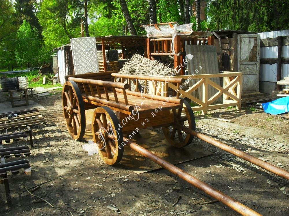 Длинная бричка из натурального дерева гораздо больше всех остальных, размещенных на нашем сайте. Можно сказать, что это полноценная телега, как в старину, которая использовалась в качестве повозки. Сама телега выполнена целиком из дерева, и имеет две пары колес разных размеров, что дополняет стильный дизайн. Четырехколесная телега очень хорошо выглядит в ландшафтном дизайне, а также может быть использована в качестве витрин или декора в помещениях. Проявите фантазию, и придумайте оригинальное применение такой витрины, чтобы обратить внимание прохожих на товар или акционные предложения.